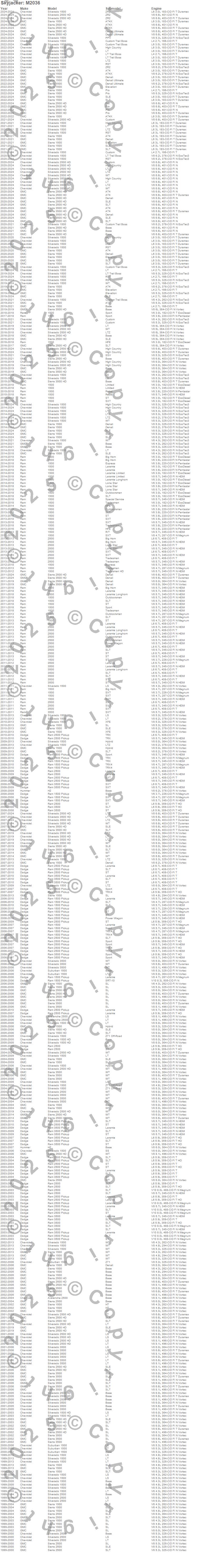 1500, 2500, 3500, Avalanche 2500, H2, Ram 1500, Ram 2500, Ram 3500, Sierra 1500, Sierra 1500 HD, Sierra 2500, Sierra 2500 HD, Sierra 3500, Sierra 3500 HD, Silverado 1500, Silverado 1500 HD, Silverado 2500, Silverado 2500 HD, Silverado 3500, Silverado 3500 HD