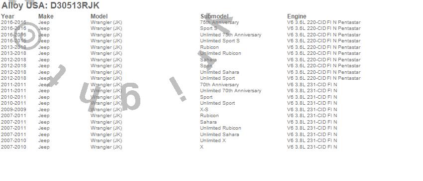 Wrangler (JK), Jeep, 2018, 2017, 2016, 2015, 2014, 2013, 2012, 2011, 2010, 2009, 2008, 2007