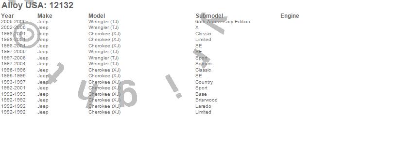 Cherokee (XJ), Wrangler (TJ), Jeep, 2006, 2005, 2004, 2003, 2002, 2001, 2000, 1999, 1998, 1997, 1996, 1995, 1994, 1993, 1992