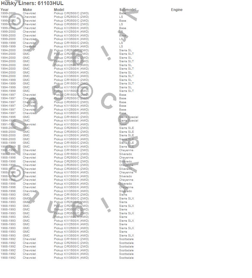 Below is an abbreviated list of applications for the Classic Style Floor Liner.
