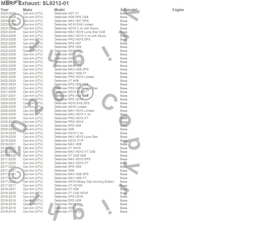 Defender DPS HD10, Defender DPS HD5, Defender DPS HD7, Defender DPS HD8, Defender DPS HD8 CAB, Defender DPS HD9, Defender DPS HD9 CAB, Defender HD10, Defender HD10 6X6 DPS, Defender HD10 6X6 Limited, Defender HD10 6X6 XT, Defender HD10 Limited, Defender HD10 Mossy Oak Hunting Edition, Defender HD10 X mr, Defender HD10 X mr with Doors, Defender HD10 XT, Defender HD10 XT-P, Defender HD5, Defender HD7, Defender HD7 XT