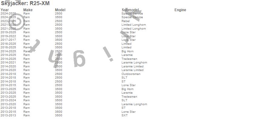 Skyjacker - Leveling Kit P/N R25-XM Features: