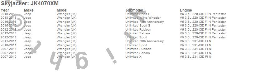 Wrangler (JK), Jeep, 2018, 2017, 2016, 2015, 2014, 2013, 2012, 2011, 2010, 2009, 2008, 2007