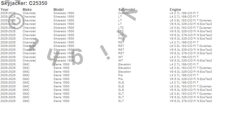 Skyjacker - Component Box P/N C25350 Features: