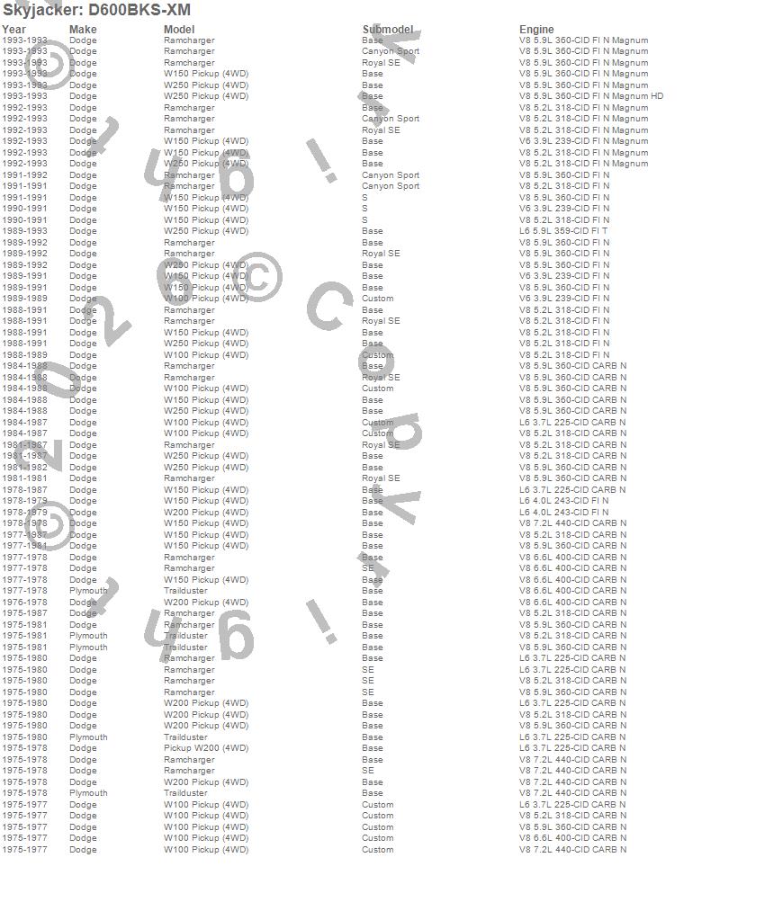 Ramcharger, Trailduster, W100 Pickup, W150 Pickup, W200 Pickup, W250 Pickup, Dodge, Plymouth, 1993, 1992, 1991, 1990, 1989, 1988, 1987, 1986, 1985, 1984, 1983, 1982