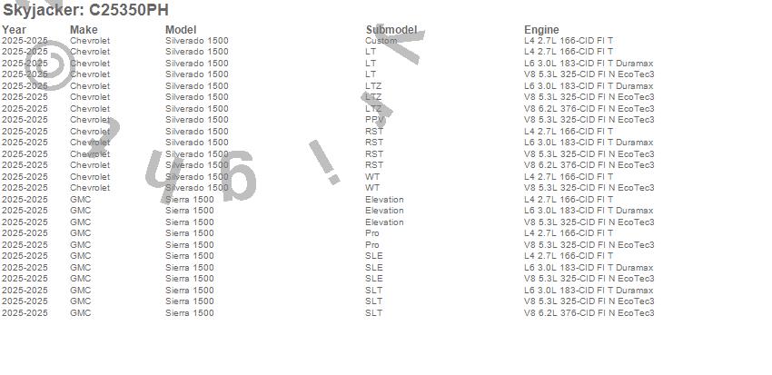 Skyjacker C25350PH Suspension Lift Kit w/Shock 3.5 in. Lift - w/Front Upper Control Arms - Strust Spacers - Rear Lift Blocks - U-Bolts - Mounting Hardware - Hydro 7000 Shocks