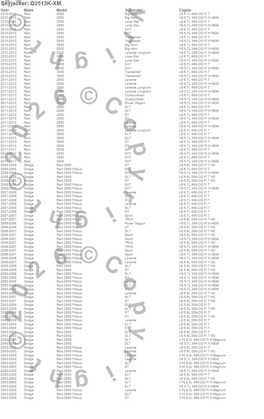 2500, 3500, Ram 2500, Ram 3500, Dodge, Ram, 2013, 2012, 2011, 2008, 2007, 2006, 2005, 2004, 2003