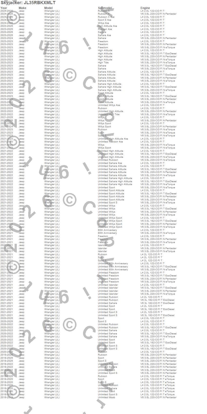 Wrangler (JL), Jeep, 2025, 2024, 2023, 2022, 2021, 2020, 2019, 2018