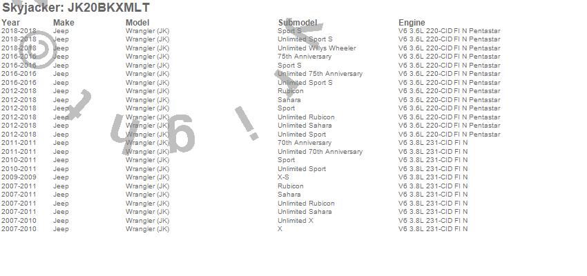 Wrangler (JK), Jeep, 2018, 2017, 2016, 2015, 2014, 2013, 2012, 2011, 2010, 2009, 2008, 2007