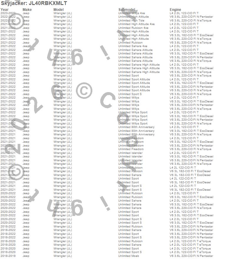 Skyjacker - Suspension Lift Kit w/Shock P/N JL40RBKXMLT Features: