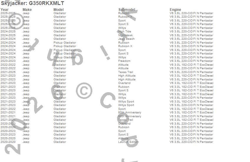 Below is an abbreviated list of applications for the Suspension Lift Kit w/Shock.