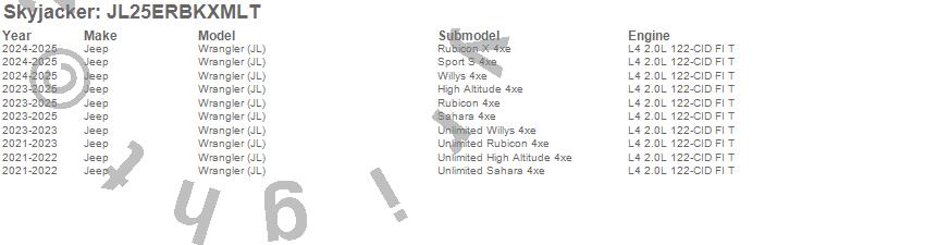 Wrangler (JL), Jeep, 2025, 2024, 2023, 2022, 2021