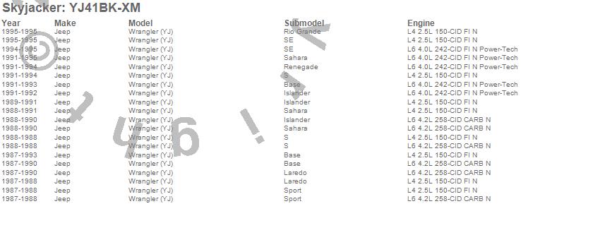 Wrangler (YJ), Jeep, 1995, 1994, 1993, 1992, 1991, 1990, 1989, 1988, 1987
