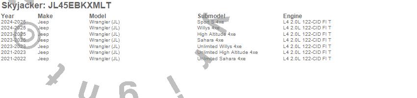 Wrangler (JL), Jeep, 2025, 2024, 2023, 2022, 2021