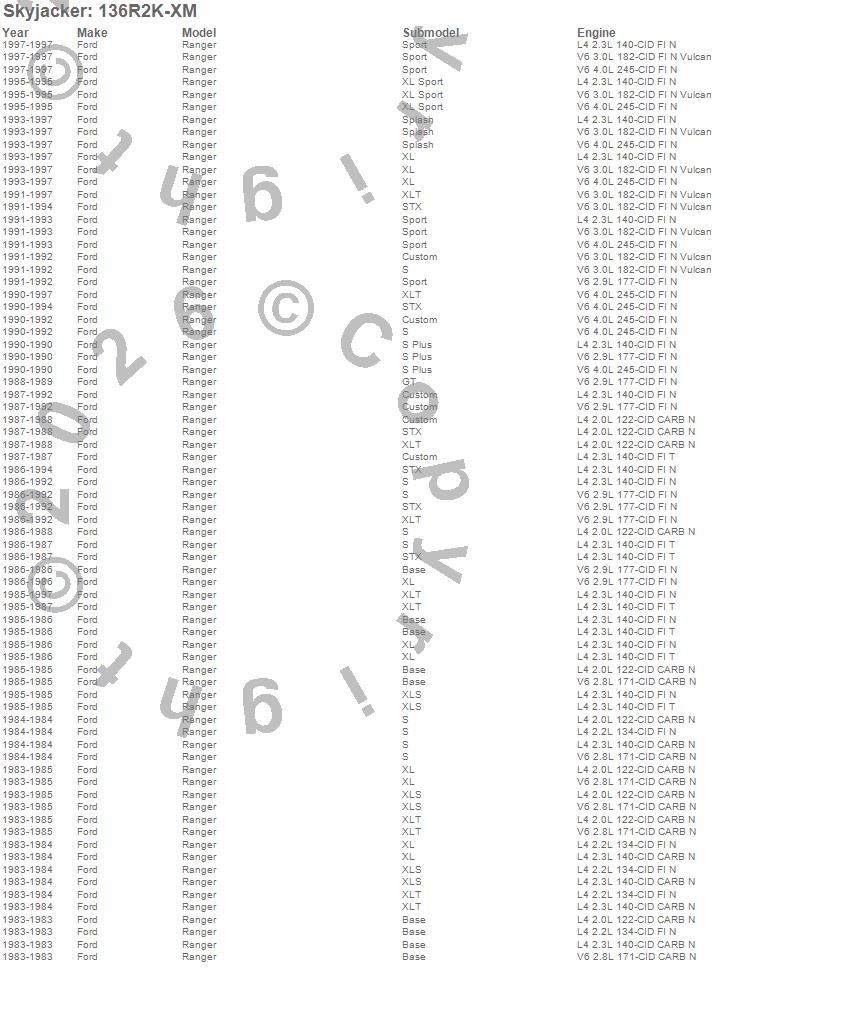 Ranger, Ford, 1997, 1996, 1995, 1994, 1993, 1992, 1991, 1990, 1989, 1988, 1987, 1986, 1985, 1984, 1983