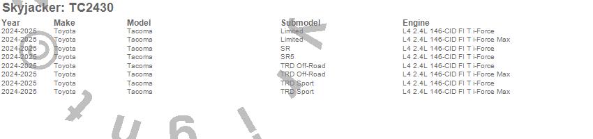 Skyjacker - Component Box P/N TC2430 Features: