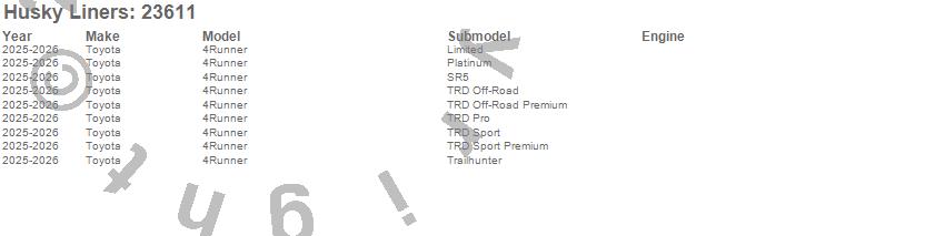 Husky Liners¿, a RealTruck brand, proudly builds industry defining automotive aftermarket products that protect your vehicle inside and out.Founded in 1988, Husky Liners set the industry standard for custom-fit floor protection, and has grown to include cargo areas, durable seat covers, custom molded mudguards, fender flares, hood and window protectors, wheel well guards, rocker guards, and an assortment of heavy duty protects designed to extend the life of your vehicle.Husky Liners products are engineered and designed in the U.S.A. and, with RealTruck's customer-first mindset, and are backed by a hassle-free, lifetime guarantee.Husky Liners¿ is total vehicle protection.