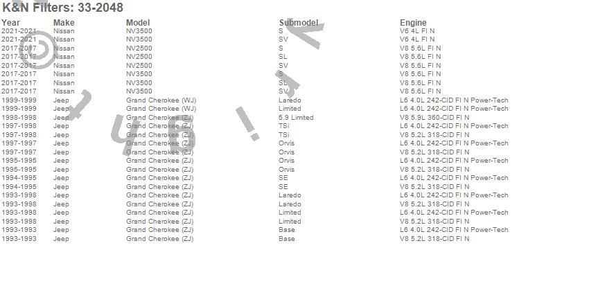 Grand Cherokee (WJ), Grand Cherokee (ZJ), NV2500, NV3500, Jeep, Nissan, 2021, 2017, 1999, 1998, 1997, 1996, 1995, 1994, 1993