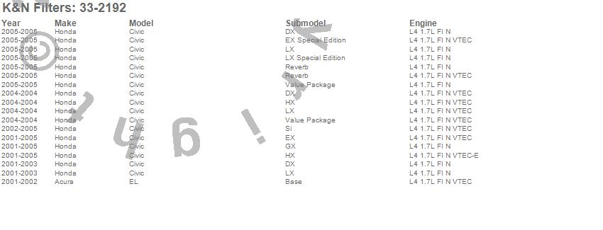 Below is an abbreviated list of applications for the Air Filter.