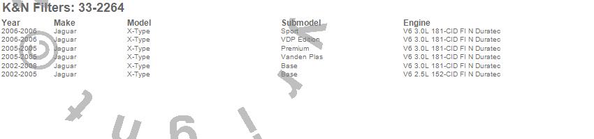 Below is an abbreviated list of applications for the Air Filter.