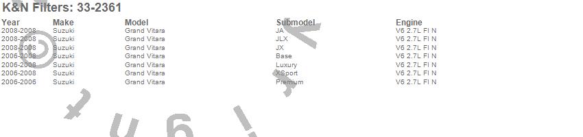 Below is an abbreviated list of applications for the Air Filter.