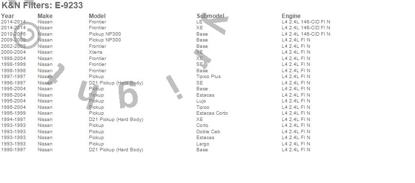 Below is an abbreviated list of applications for the Air Filter.