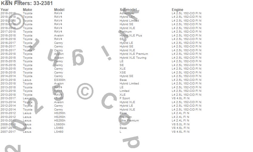 Avalon, Camry, ES300h, HS250h, LS460, LS600h, RAV4, Lexus, Toyota, 2018, 2017, 2016, 2015, 2014, 2013, 2012, 2011, 2010, 2009, 2008