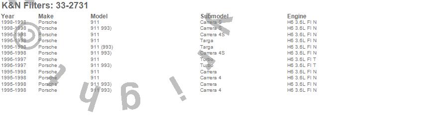Below is an abbreviated list of applications for the Air Filter.