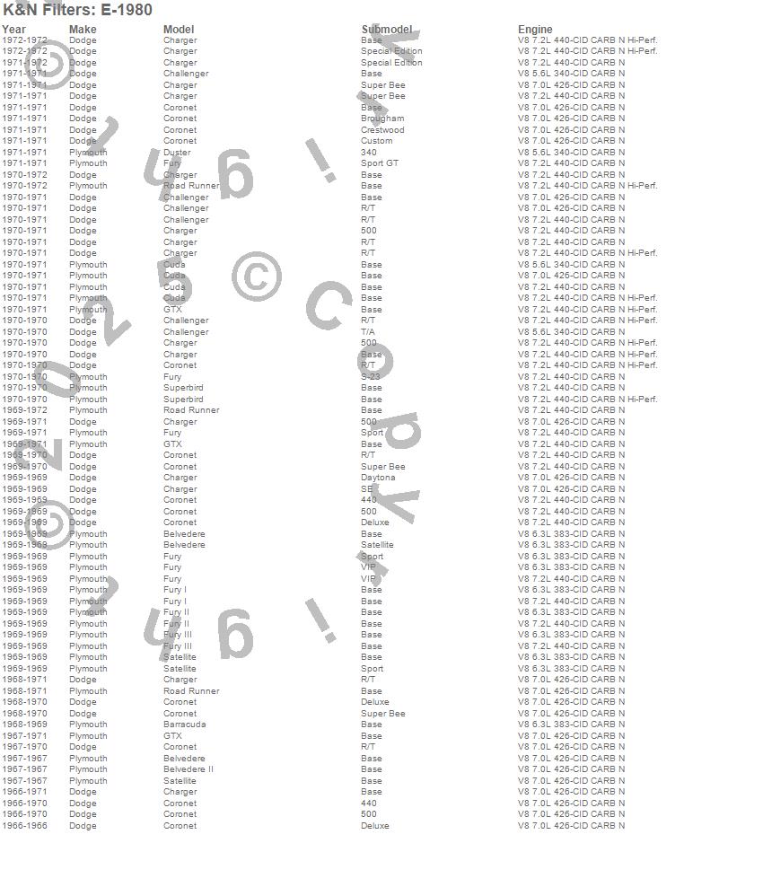 Barracuda, Belvedere, Belvedere II, Challenger, Charger, Coronet, Cuda, Duster, Fury, Fury I, Fury II, Fury III, GTX, Road Runner, Satellite, Superbird, Dodge, Plymouth, 1972, 1971