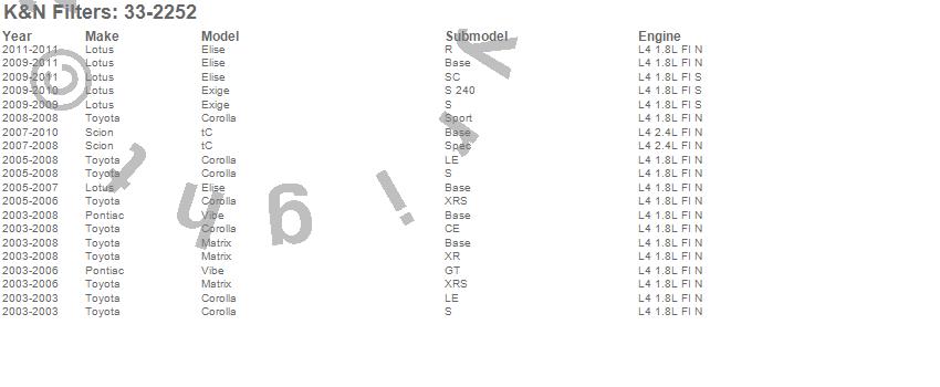 Corolla, Elise, Exige, Matrix, tC, Vibe, Lotus, Pontiac, Scion, Toyota, 2011, 2010, 2009, 2008, 2007, 2006, 2005, 2004, 2003