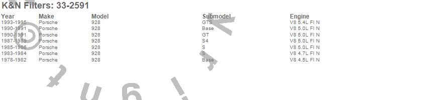 Below is an abbreviated list of applications for the Air Filter.