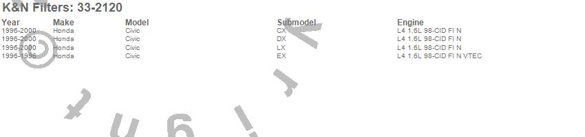 Below is an abbreviated list of applications for the Air Filter.