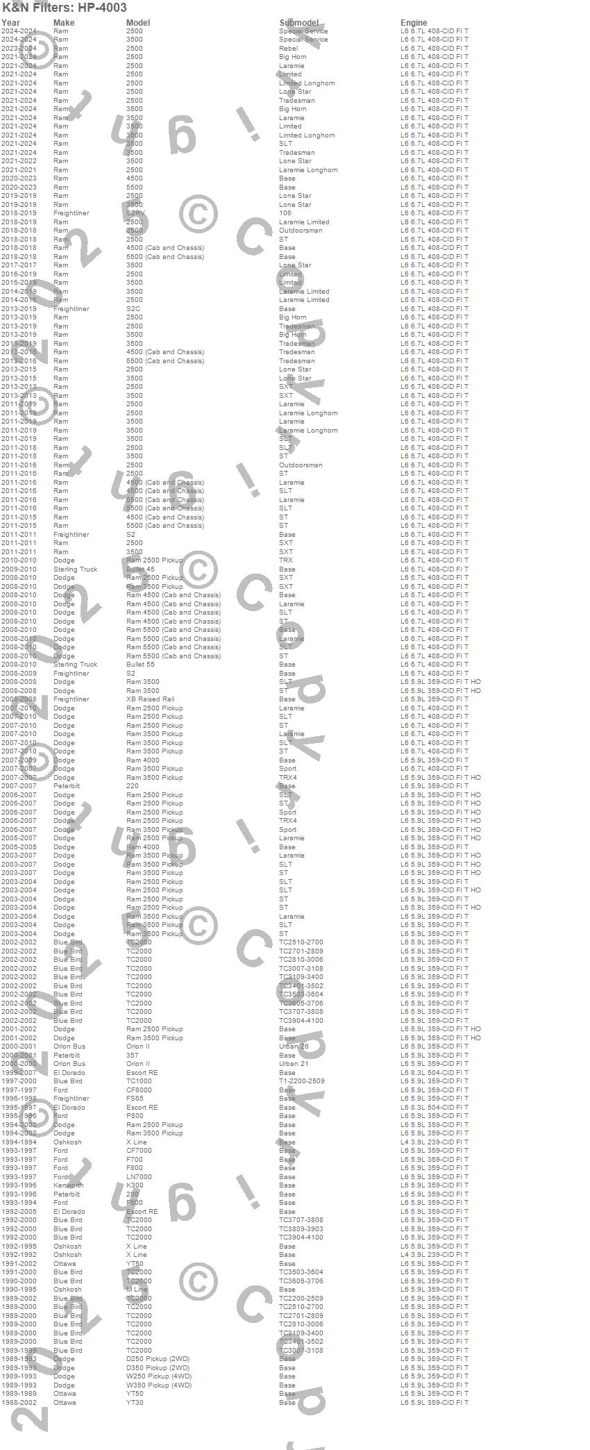Below is an abbreviated list of applications for the Performance Gold Oil Filter.