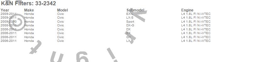 Below is an abbreviated list of applications for the Air Filter.