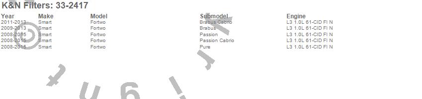 Below is an abbreviated list of applications for the Air Filter.