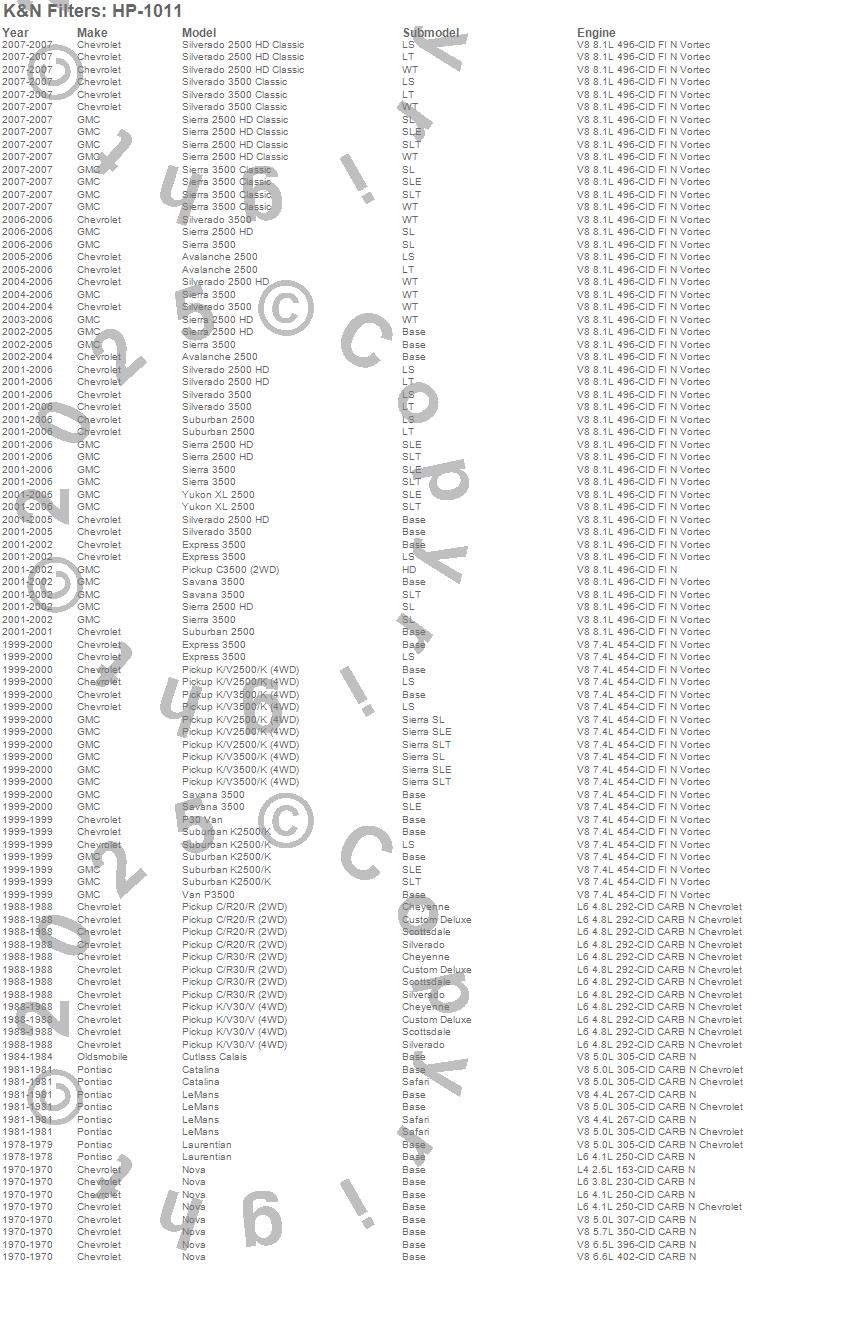 Avalanche 2500, C3500 Pickup, Catalina, Cutlass Calais, Express 3500, K2500 Pickup, K2500 Suburban, K3500 Pickup, Laurentian, LeMans, Nova, P30 Van, P3500 Van, R20 Pickup, R30 Pickup, Savana 3500, Sierra 2500 HD, Sierra 2500 HD Classic, Sierra 3500, Sierra 3500 Classic
