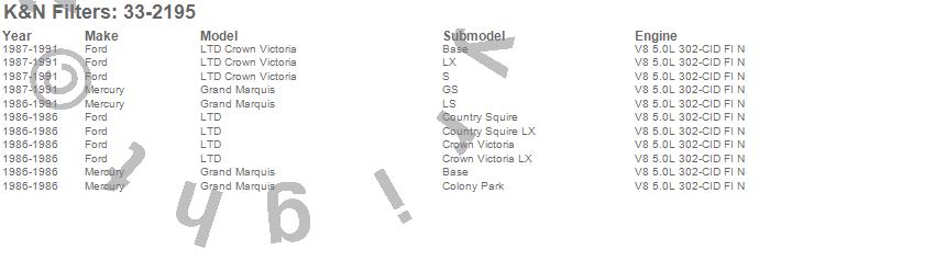 Below is an abbreviated list of applications for the Air Filter.