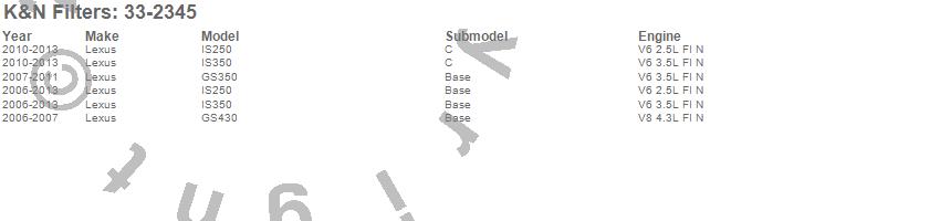 Below is an abbreviated list of applications for the Air Filter.
