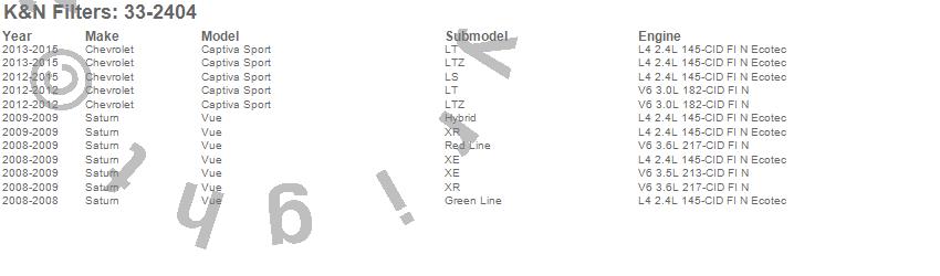 Below is an abbreviated list of applications for the Air Filter.