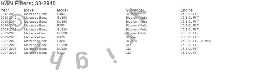Below is an abbreviated list of applications for the Air Filter.