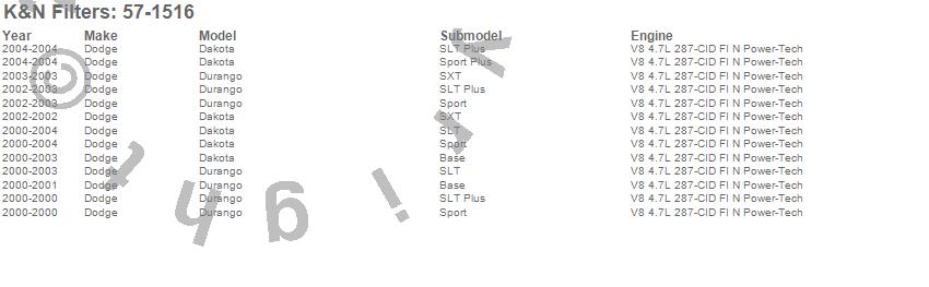 Below is an abbreviated list of applications for the Filtercharger Injection Performance Kit.