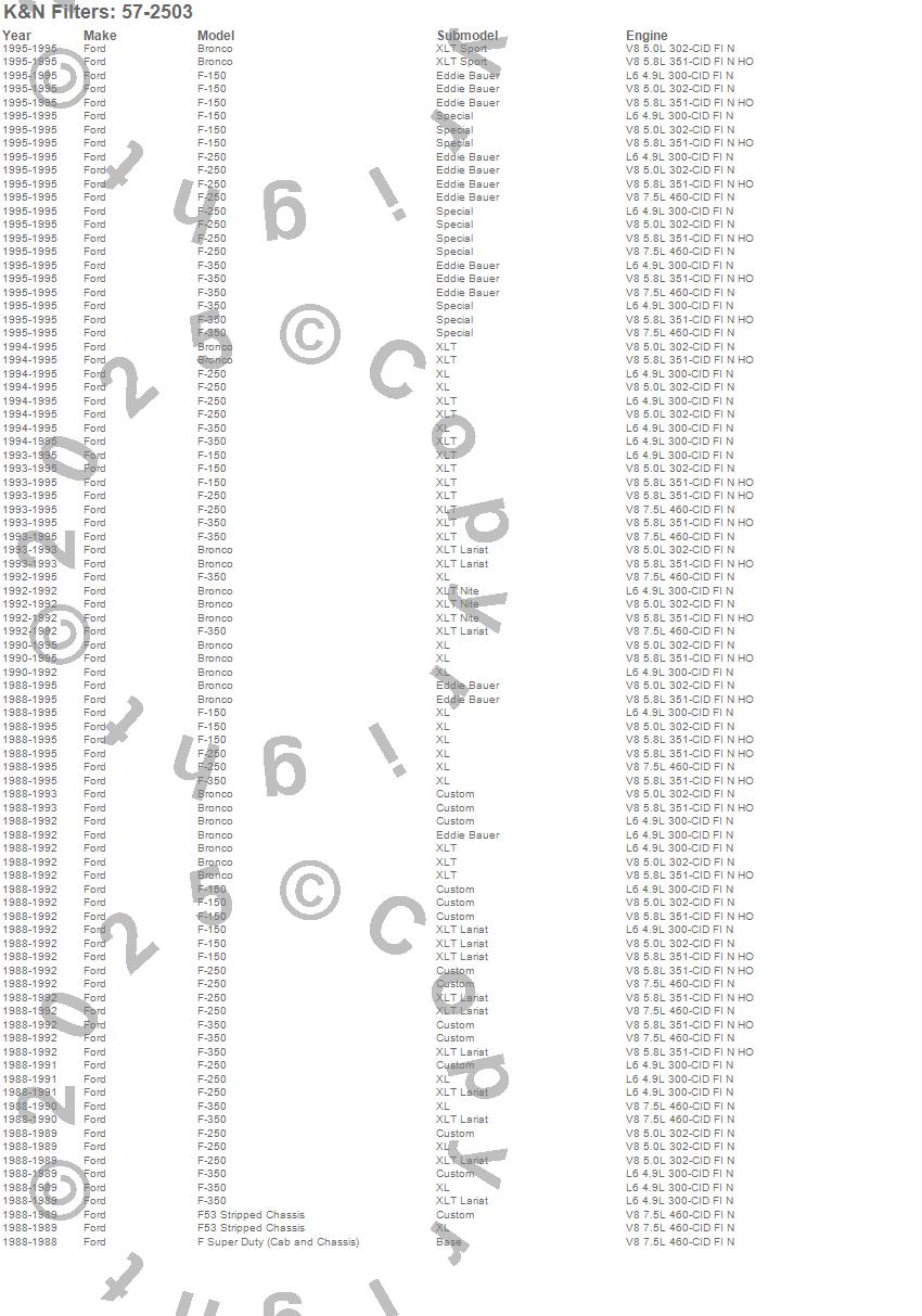 Below is an abbreviated list of applications for the Filtercharger Injection Performance Kit.