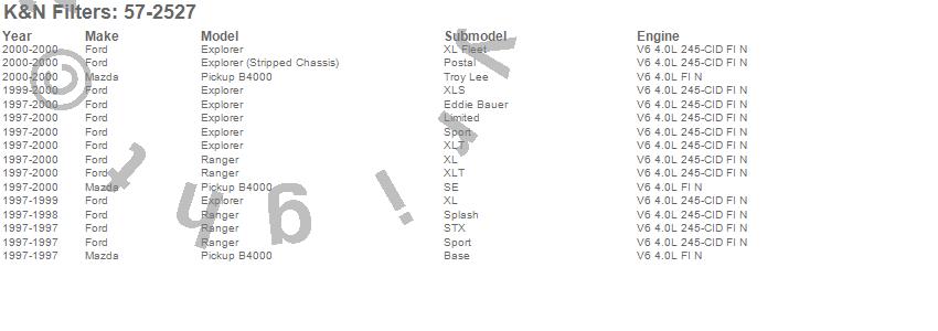 Below is an abbreviated list of applications for the Filtercharger Injection Performance Kit.