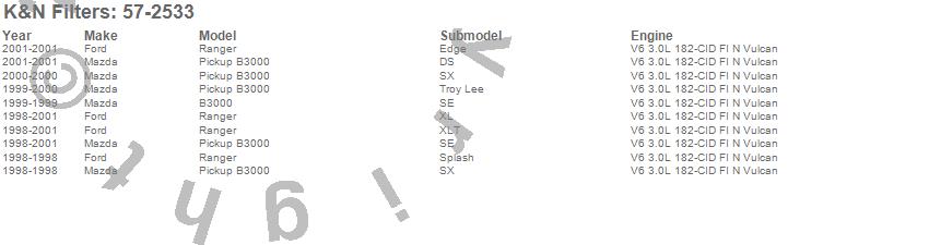 Below is an abbreviated list of applications for the Filtercharger Injection Performance Kit.