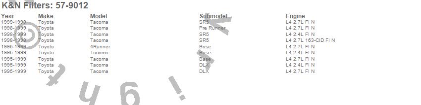 Below is an abbreviated list of applications for the Filtercharger Injection Performance Kit.
