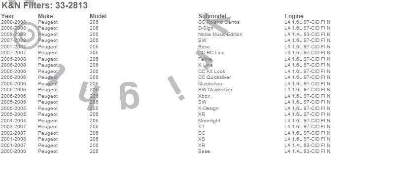 Below is an abbreviated list of applications for the Air Filter.