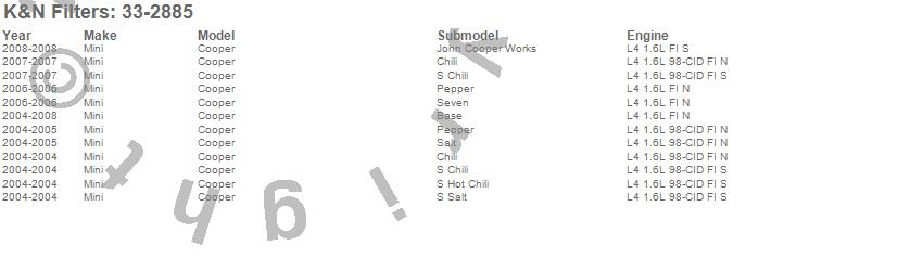 Below is an abbreviated list of applications for the Air Filter.