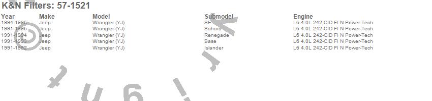 K&N Filters - Filtercharger Injection Performance Kit P/N 57-1521 Features: