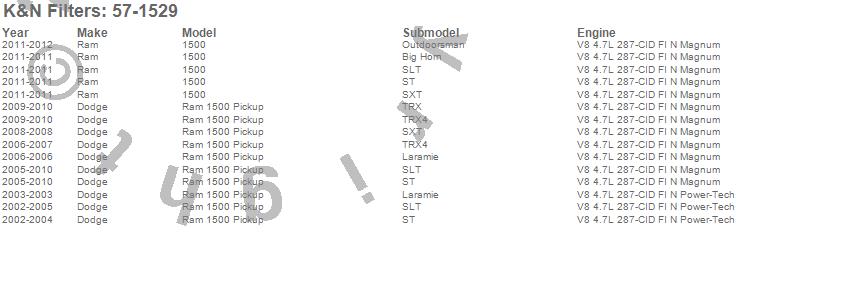 Below is an abbreviated list of applications for the Filtercharger Injection Performance Kit.