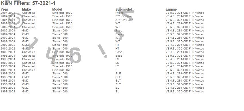 Below is an abbreviated list of applications for the Filtercharger Injection Performance Kit.